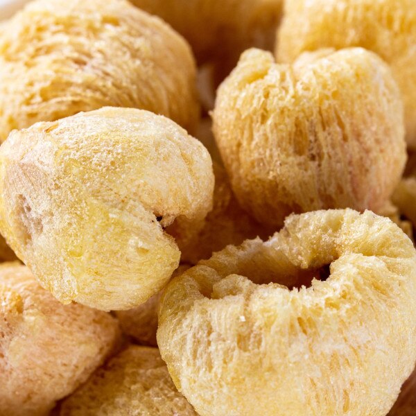 Freeze Dried Lychees from Forager Food Co. look just like fresh peeled lychees, but with a crunchy texture and concentrated flavour. The freeze-drying process ensures that they retain their natural colour and shape, without shrinking in size, making them a perfect addition to a variety of culinary creations.